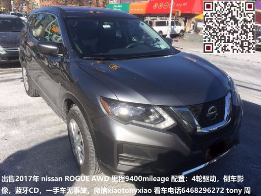 出售2017年 nissan ROGUE AWD 里程9400mileage 配置:4轮驱动,倒车影像,蓝牙,CD,一手车无事