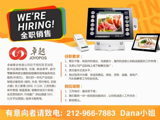 华尔街Argus Merchant Services诚聘2-3名商务代表