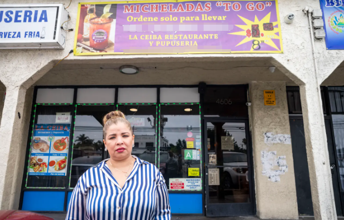 在加州康普顿,一家名为 Restaurante Y Pupuseria La Ceiba 的拉美